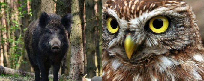 Find den snu ugle i tide i skoven / collage med Moje-foto