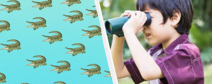 Billedet kan snyde selv de mest opmærksomme. Krokodillepuslespil forvirrer øjet med baggrund og monotoni / Moje Collage, Moje-foto, foto af depositphotos.